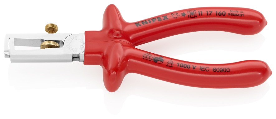 Стриппер VDE для одно/много/тонкожил. кабеля, зачистка: d 5 мм (10 мм², AWG 7), L-160 мм, c регулировкой, хром, 1-к ручки